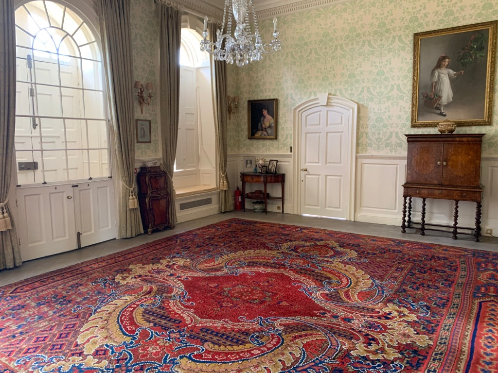 Having been chosen to restore a huge Sultanabad Ziegler carpet (see below), we have loaned an item from stock temporarily in order to help preserve the functionality of the main reception room at Kingston Bagpuize House Oxfordshire. This working house is used for film sets and for marriages and other conferences and social gathering in the house and grounds.