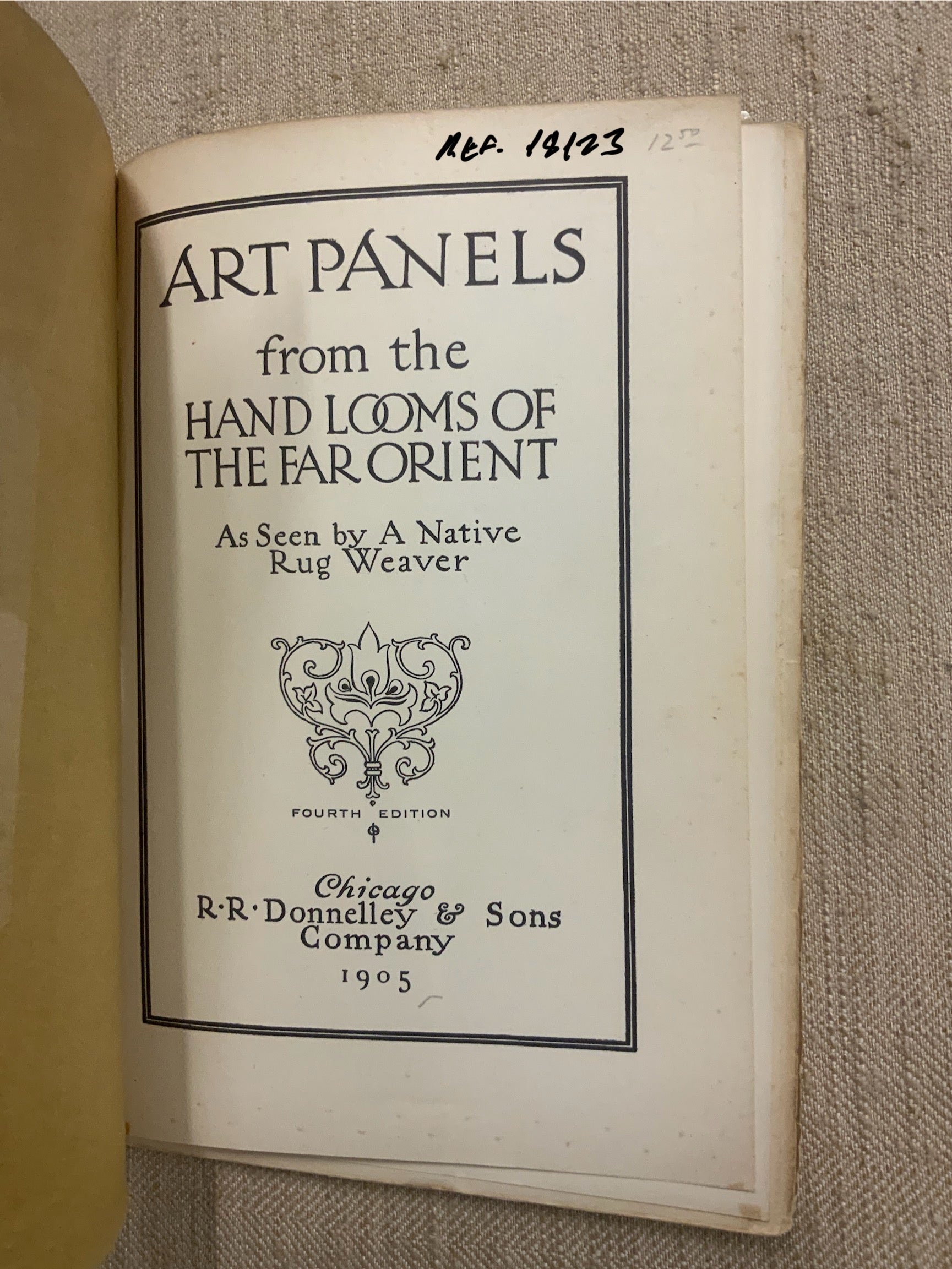 As the title states - a handbook -  fascinating early dealer catalogue documenting late 19th cent rugs. Soft cover protected by plastic, fragile but intact.