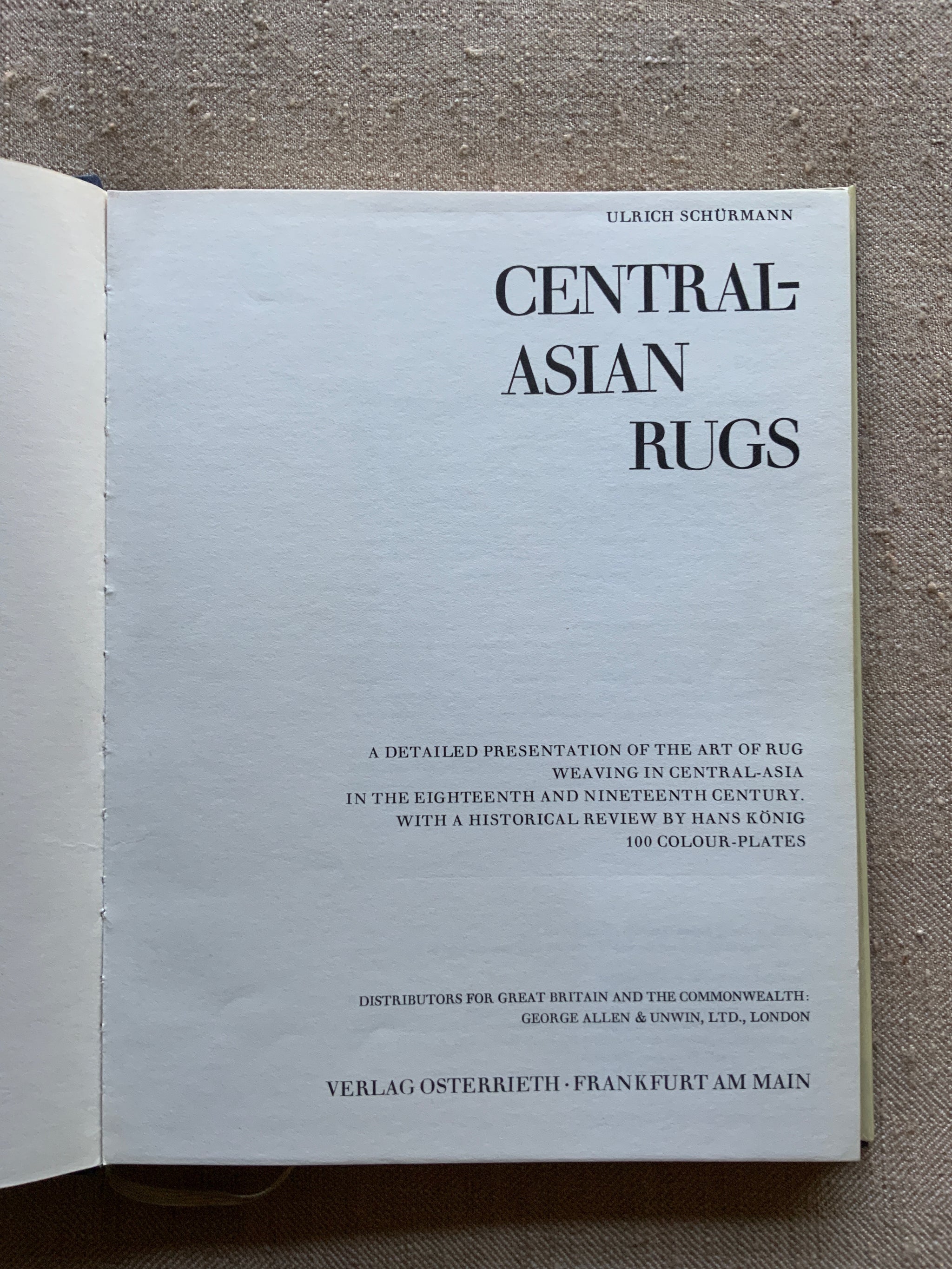 Describing Central Asian rugs in depth to locate the products of the various tribes and clans according to ethnological evidence and structural differences. With a historical review by Hans Konig.