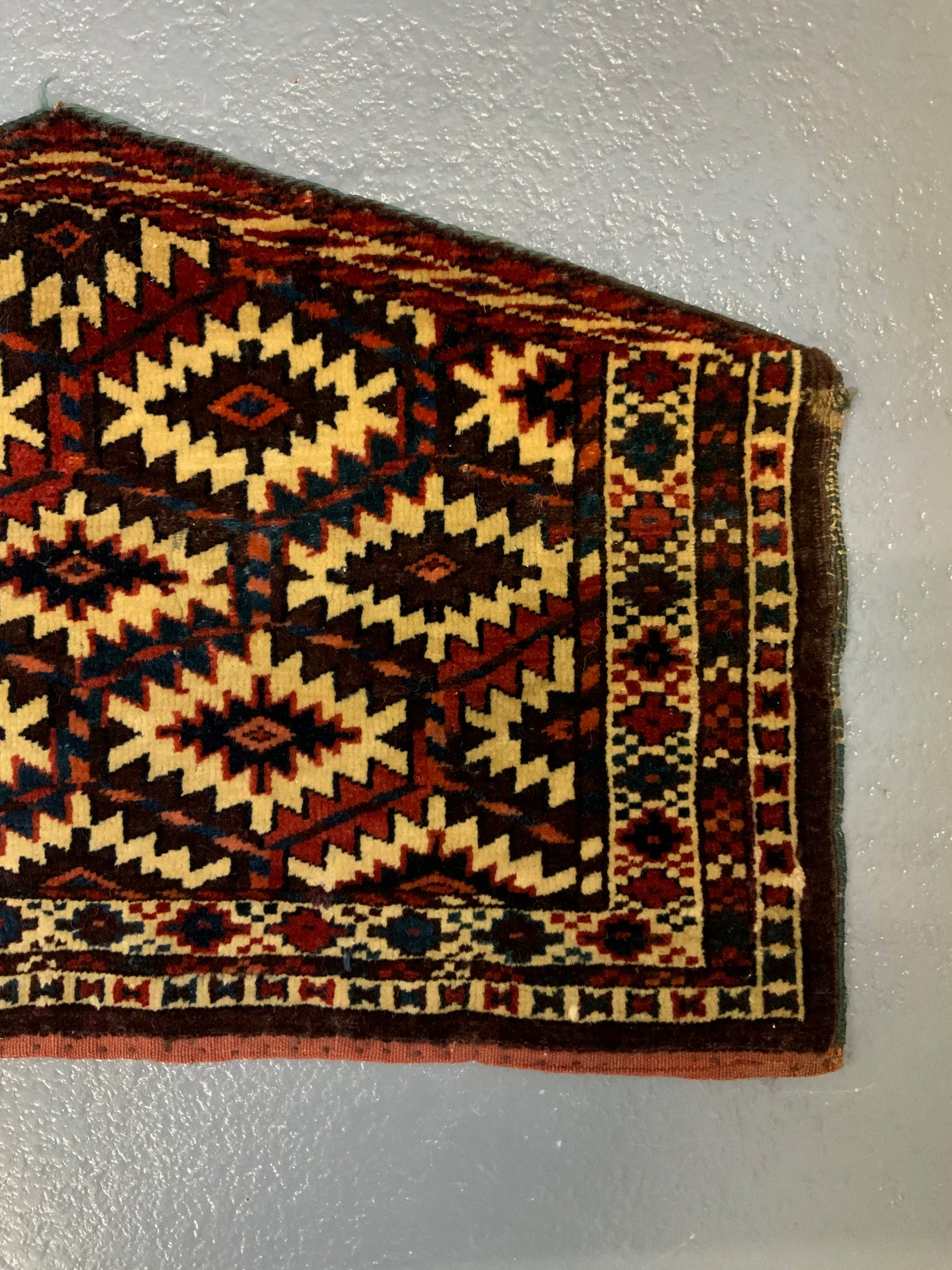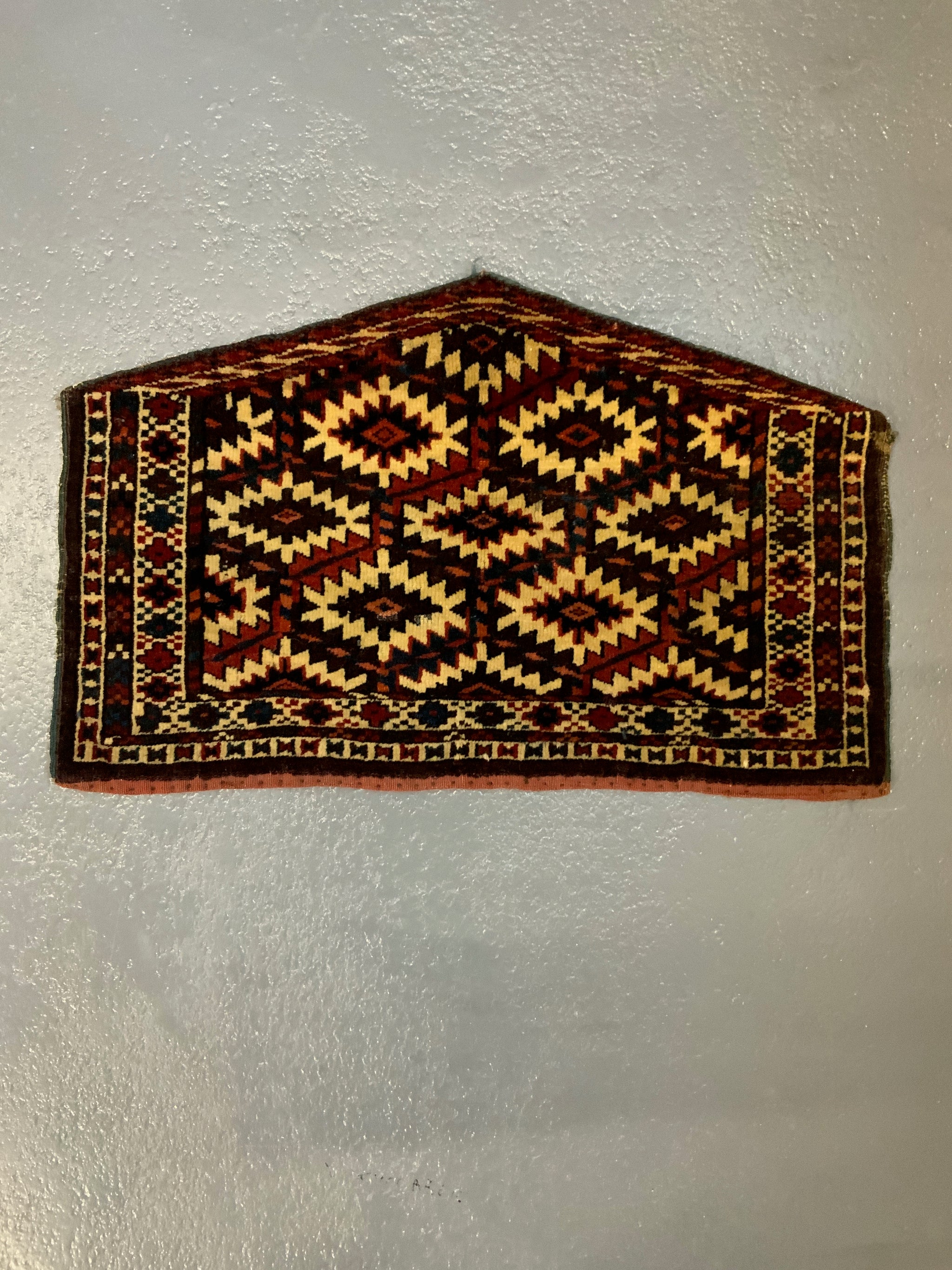 Probably what was once one of a pair of these five sided carpet piled hangings which would have hunf from a processional camel