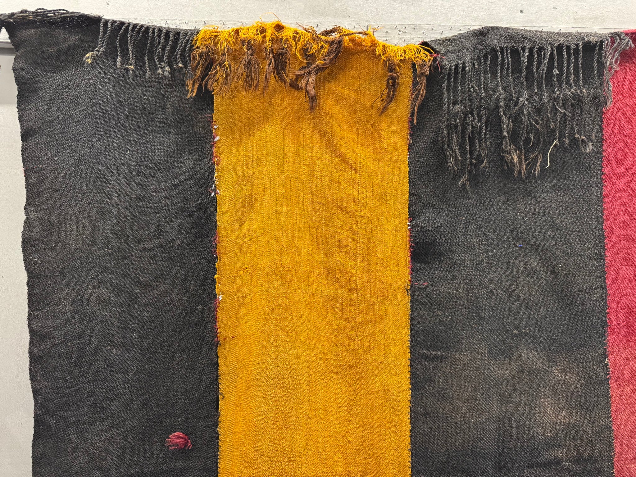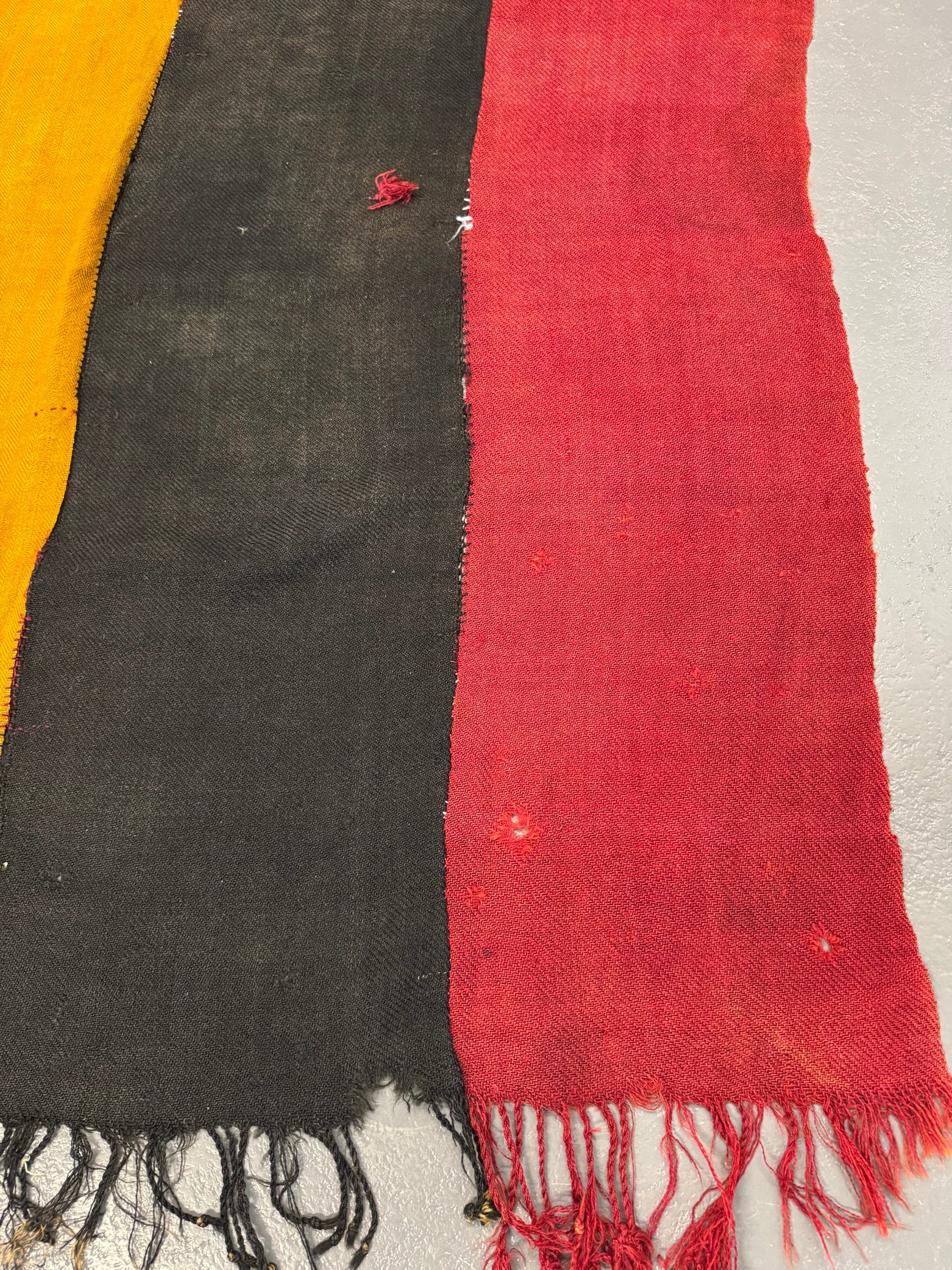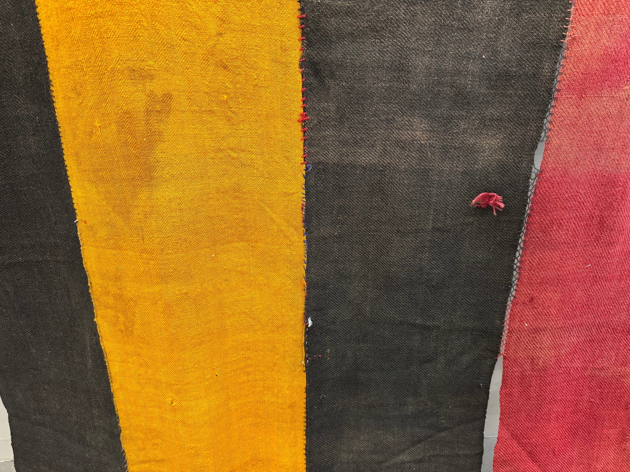 Previously used as a tent divide, hanging, curtain or for a throw or covers, constructed of joined woollen panels - small defects commensurate with use