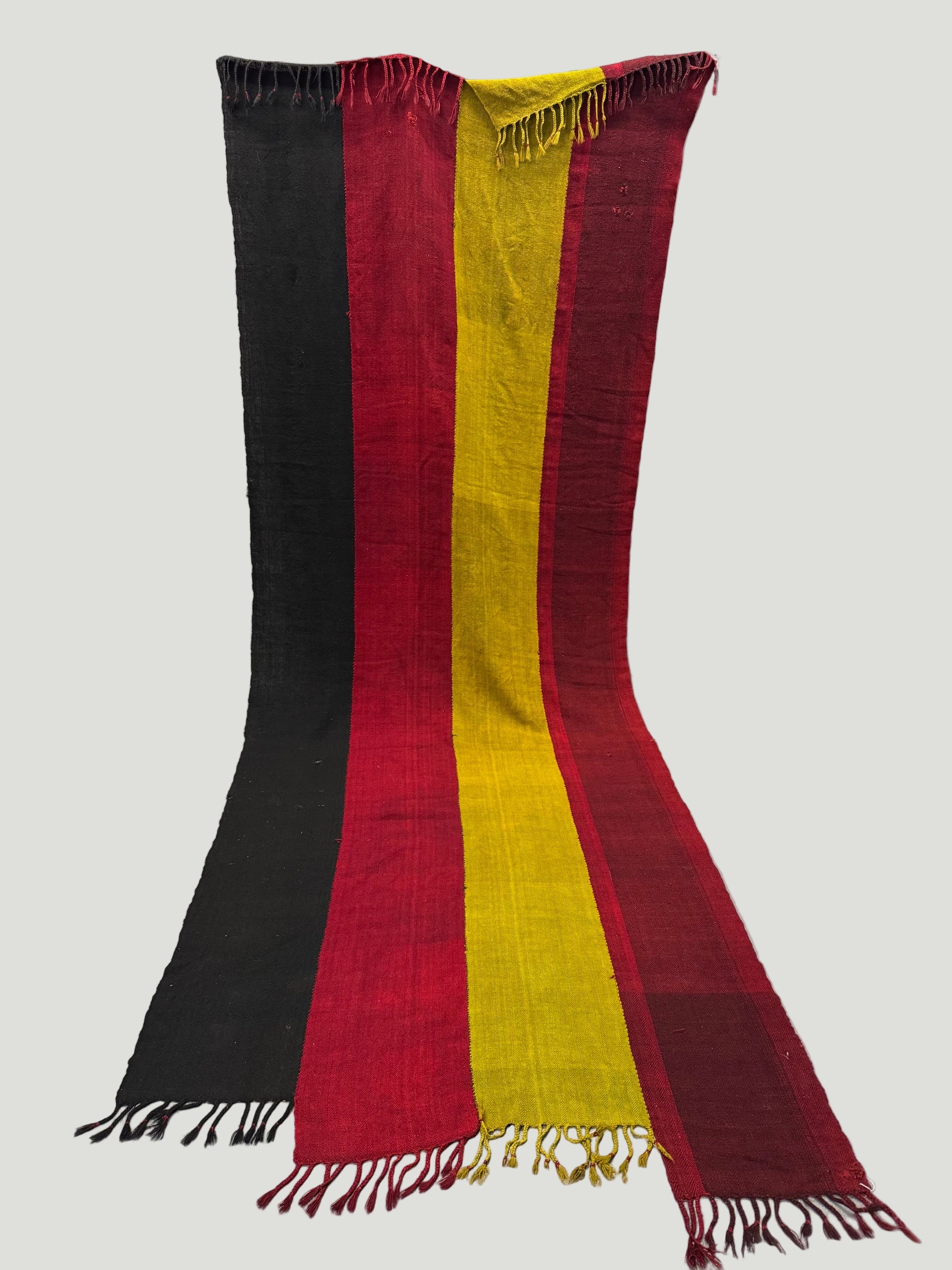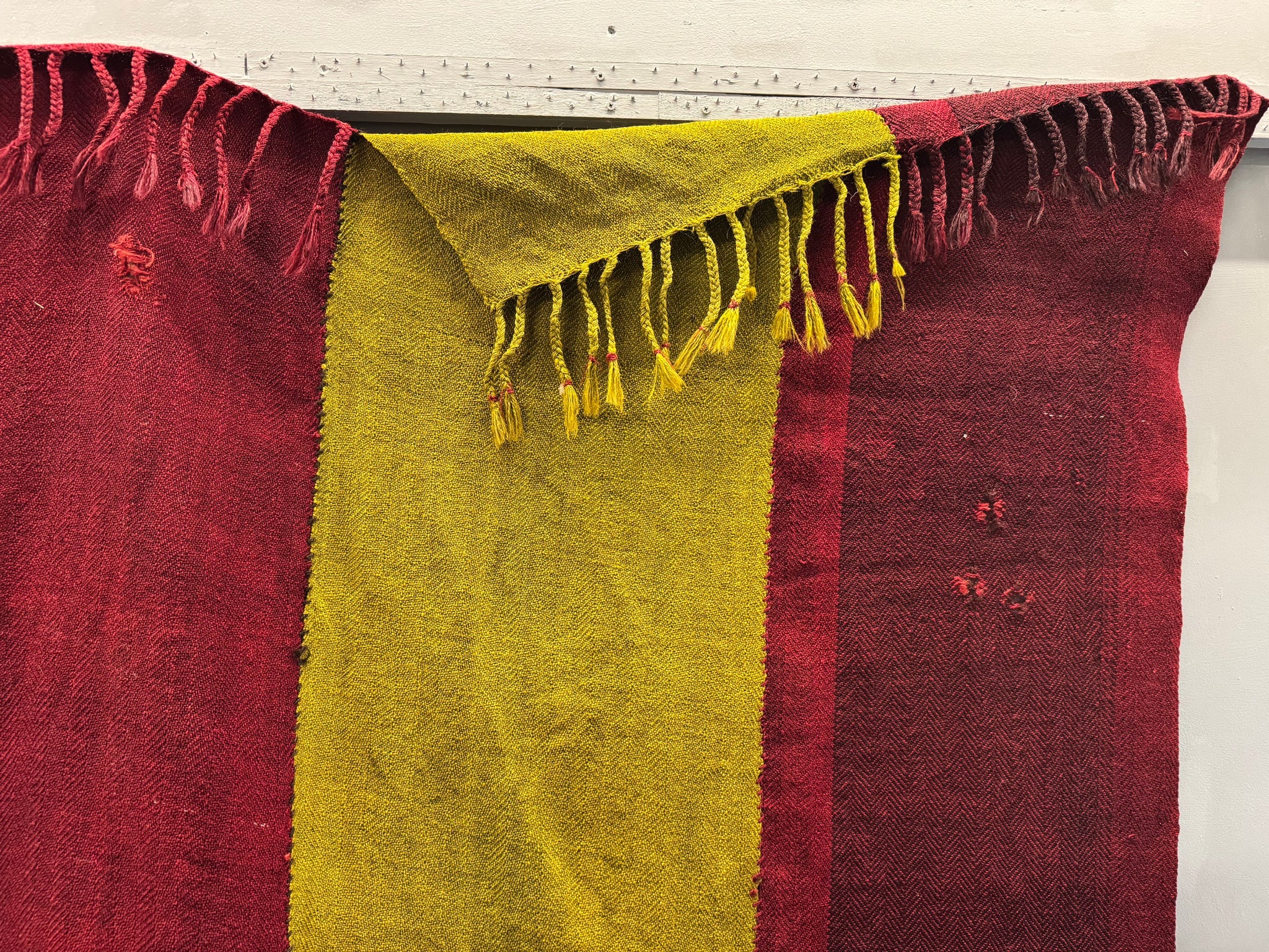 Previously used as a tent divide, hanging, curtain or for a throw or covers, constructed of joined woollen panels - small defects commensurate with use