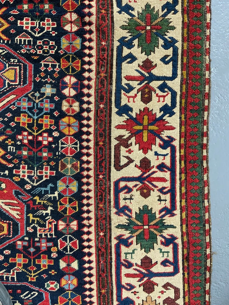 Some lines of the end borders are missing and there is a repair towards one corner - as shown in the photos