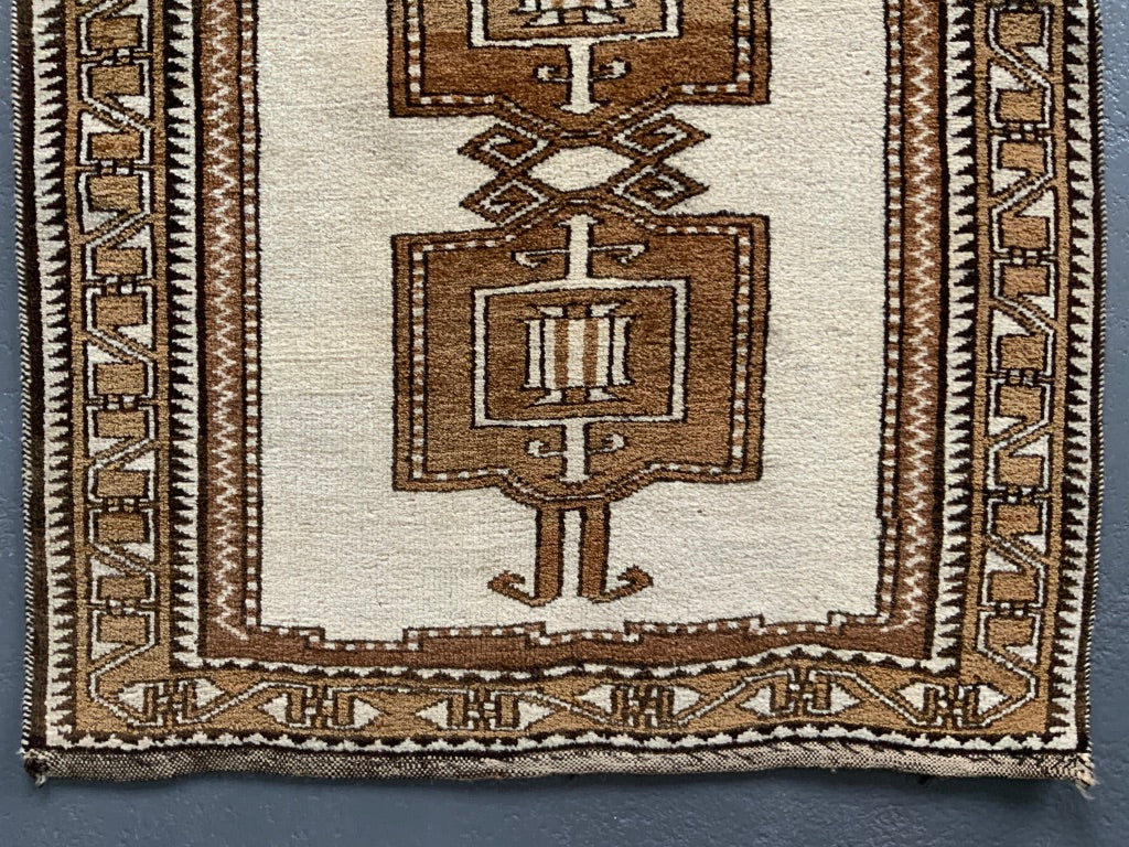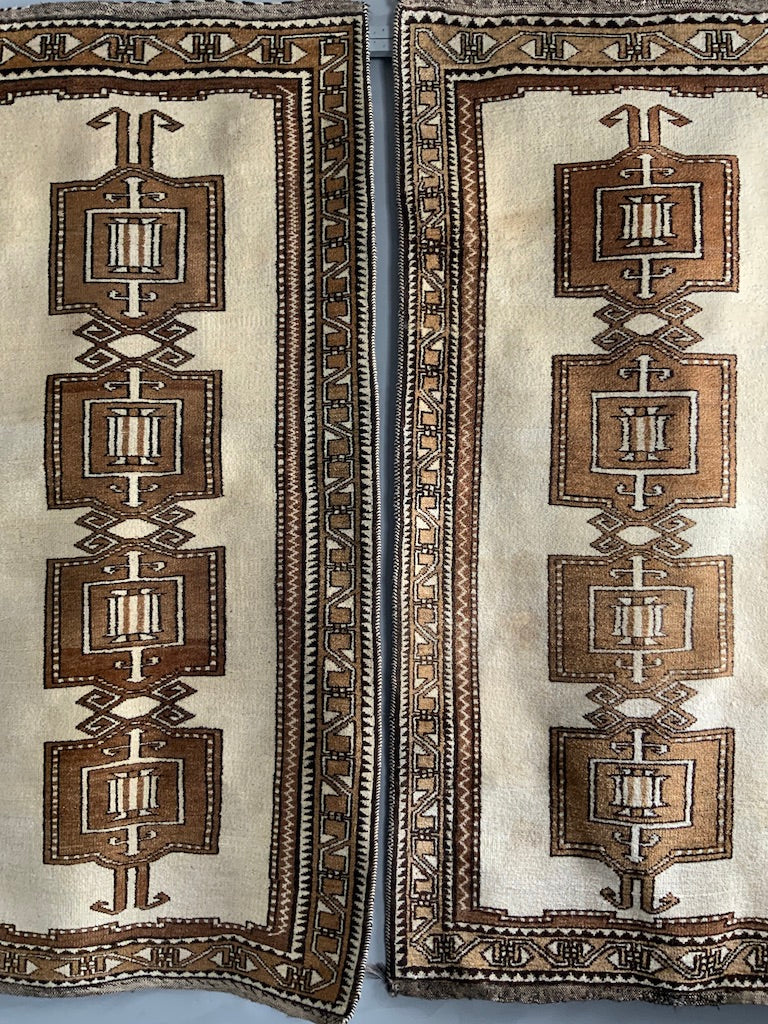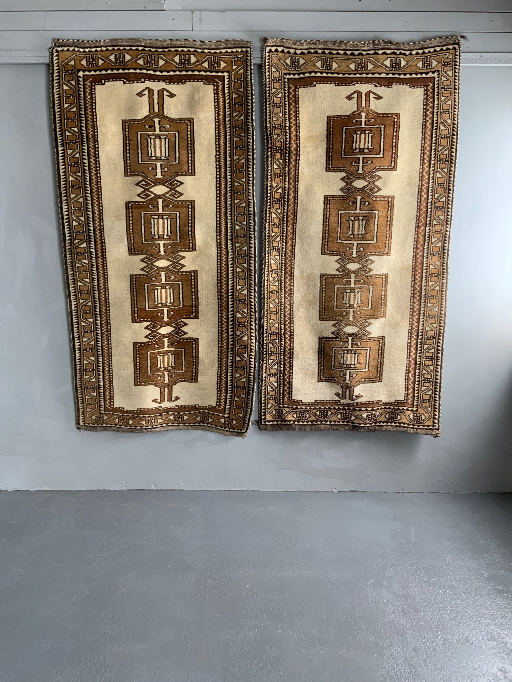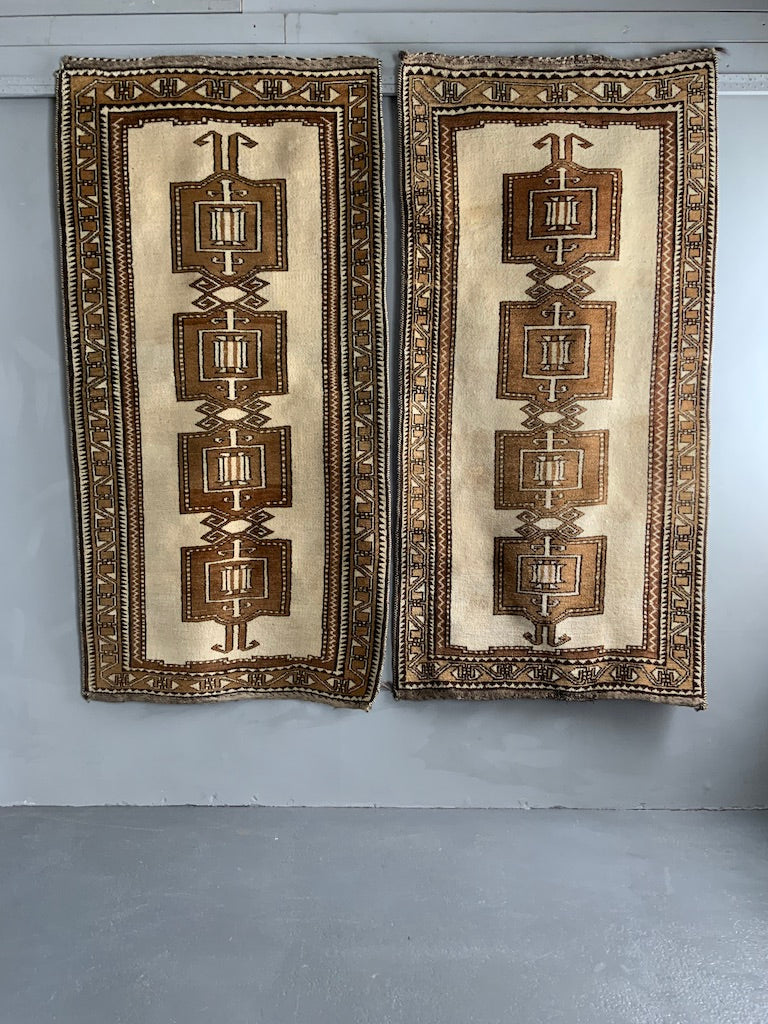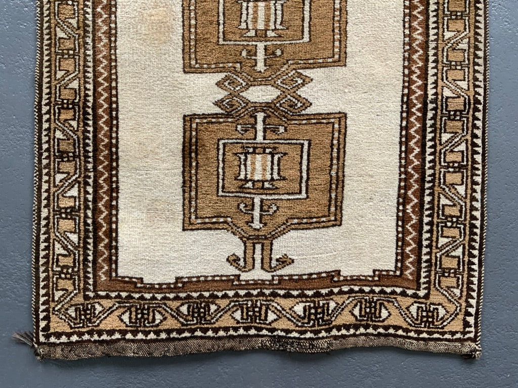 These simple, robust rugs are made from naturally pigmented sheep wool, undyed as clipped from the sheep (creams / browns / greys) - in good condition