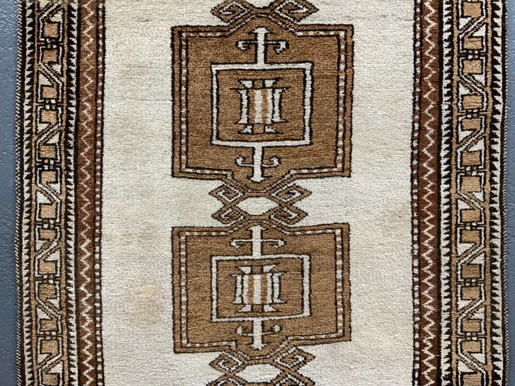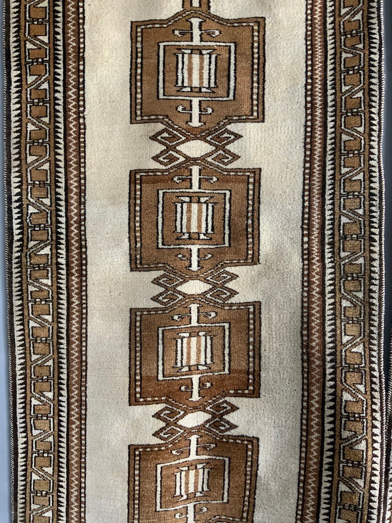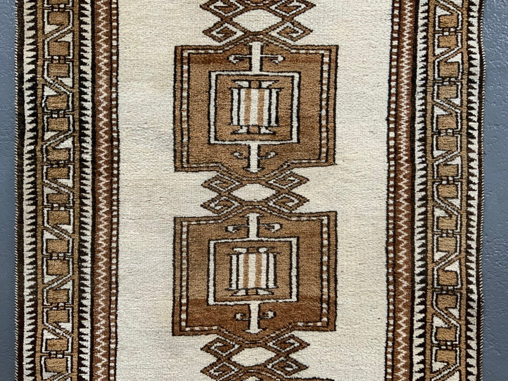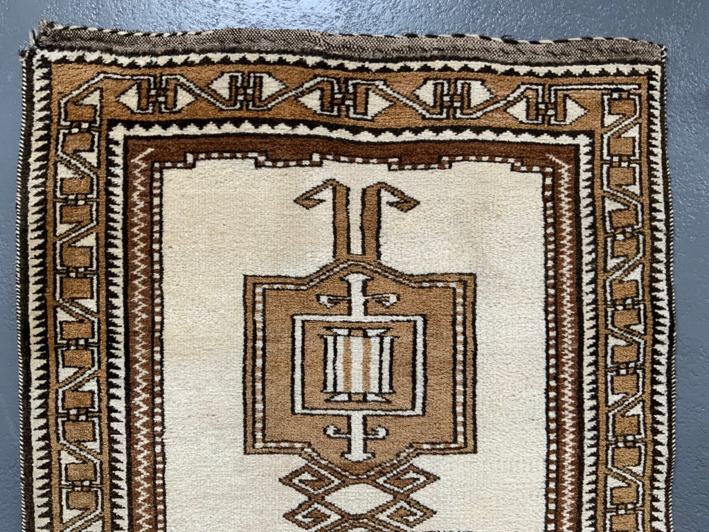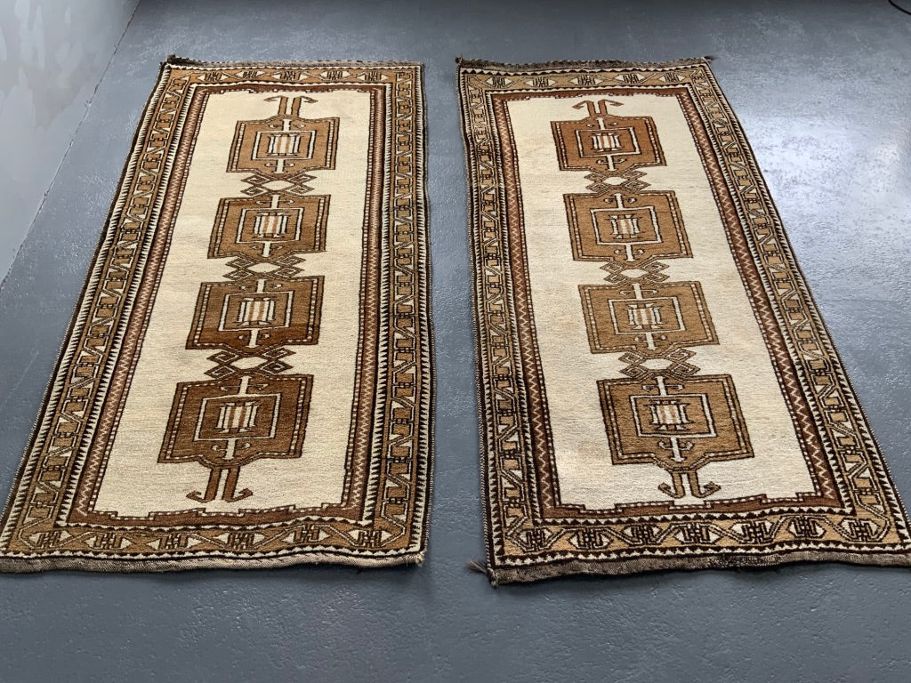 These simple, robust rugs are made from naturally pigmented sheep wool, undyed as clipped from the sheep (creams / browns / greys) - in good condition