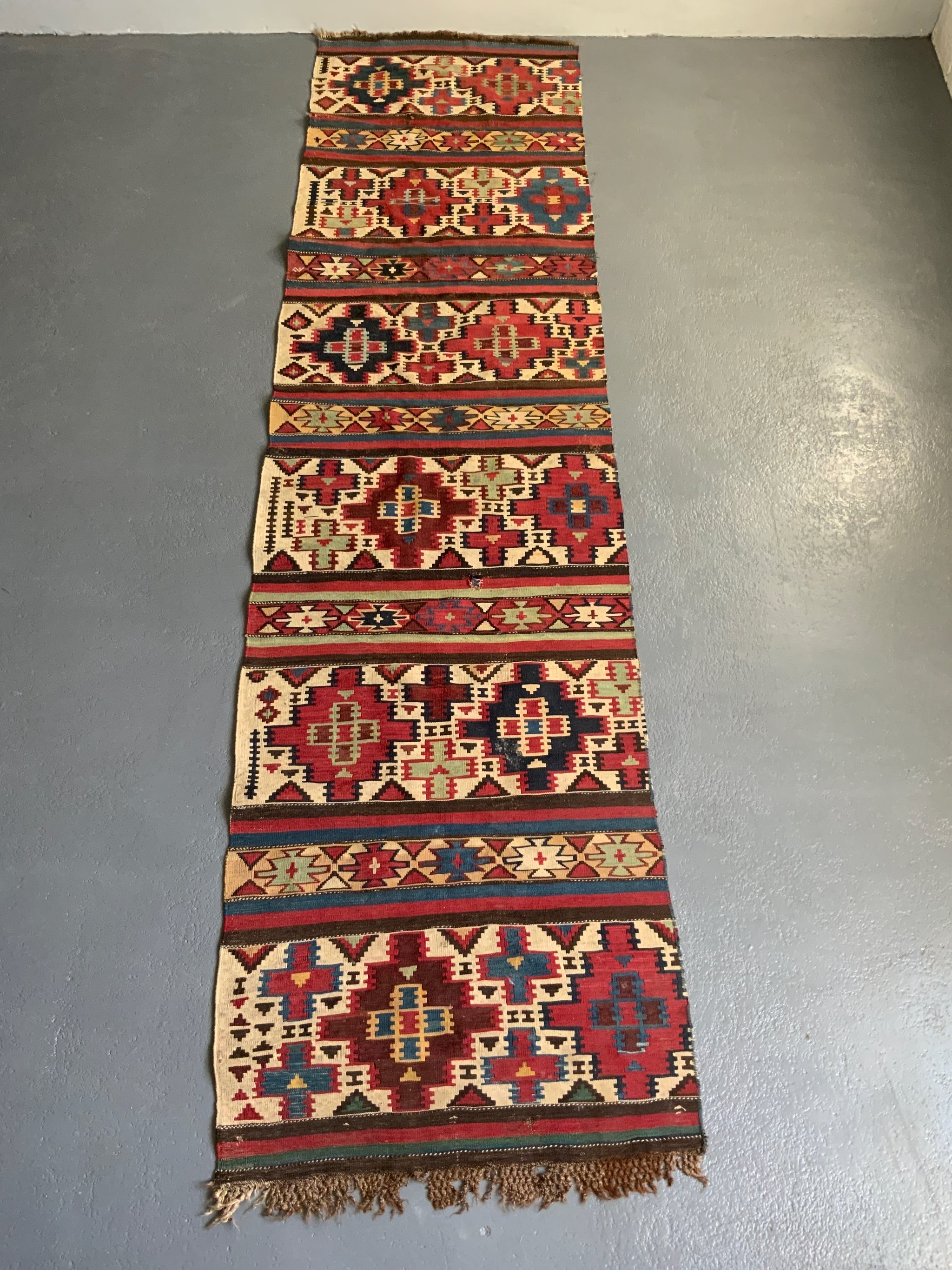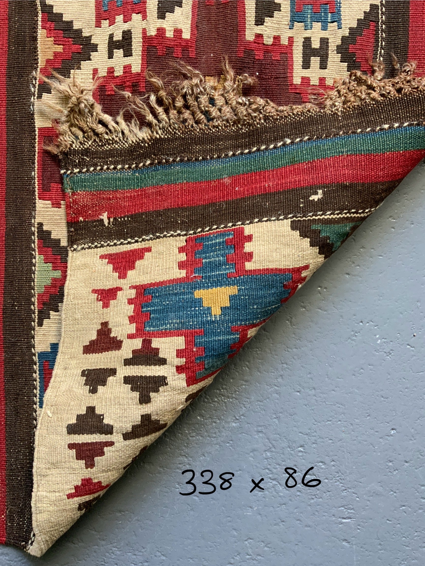 Caucasian antique Azerbaijan half of a kilim (338 x 86cm)