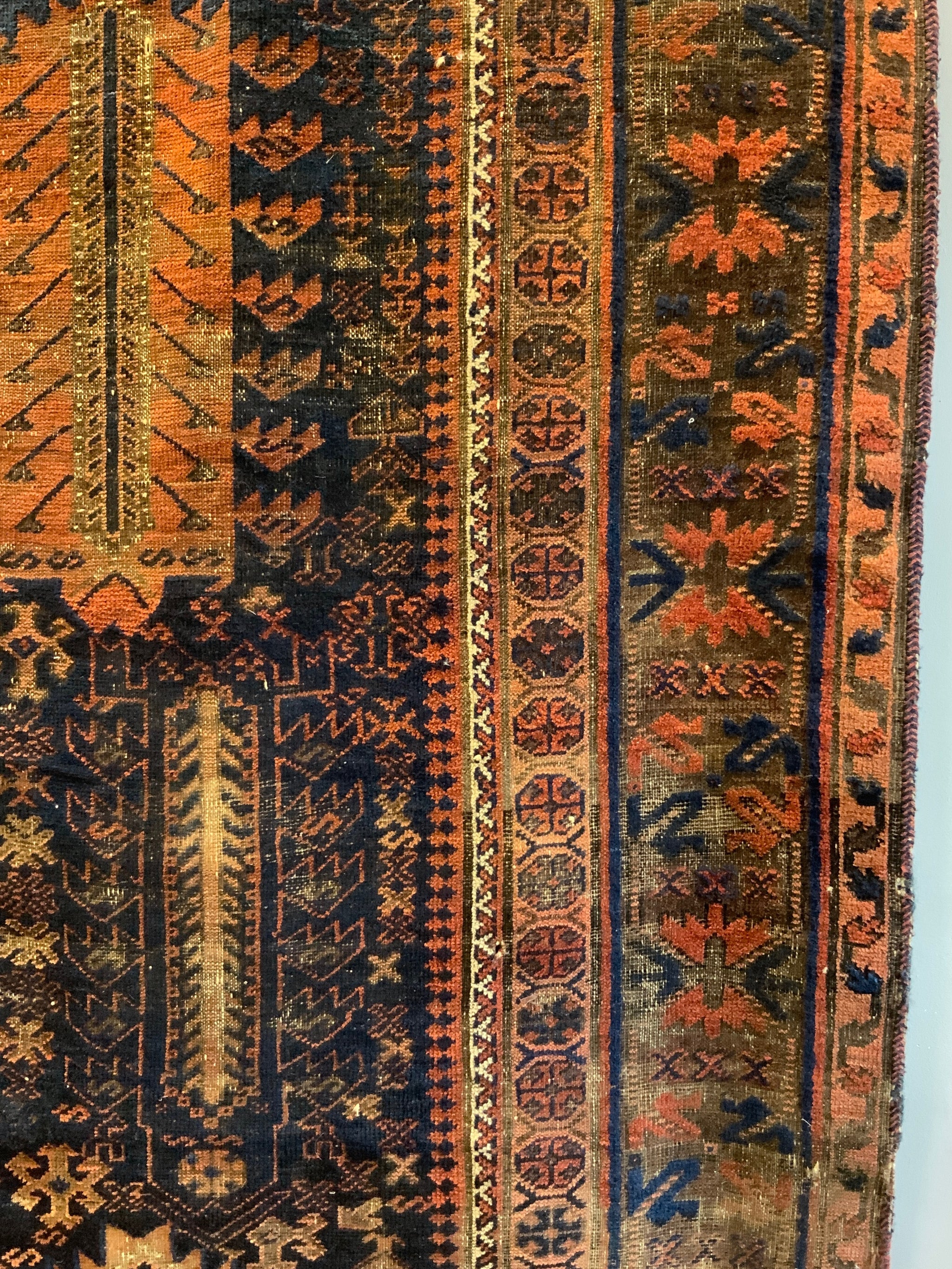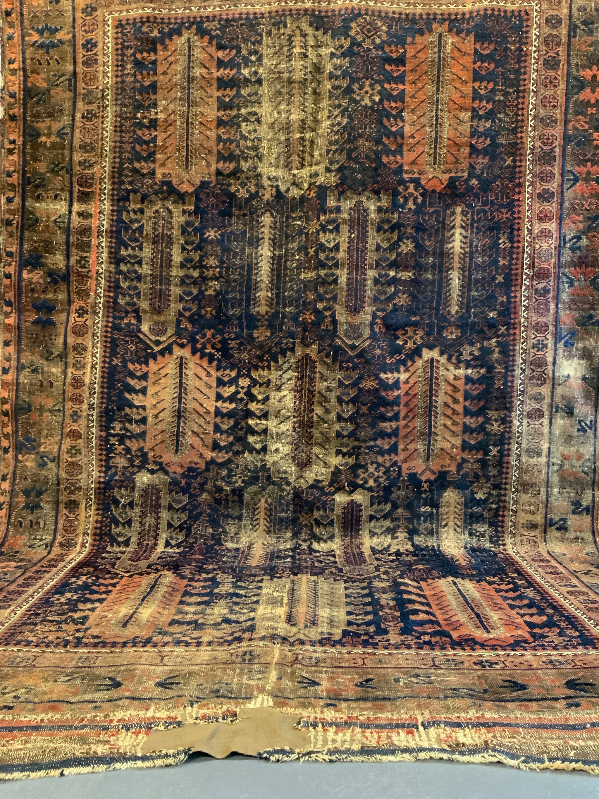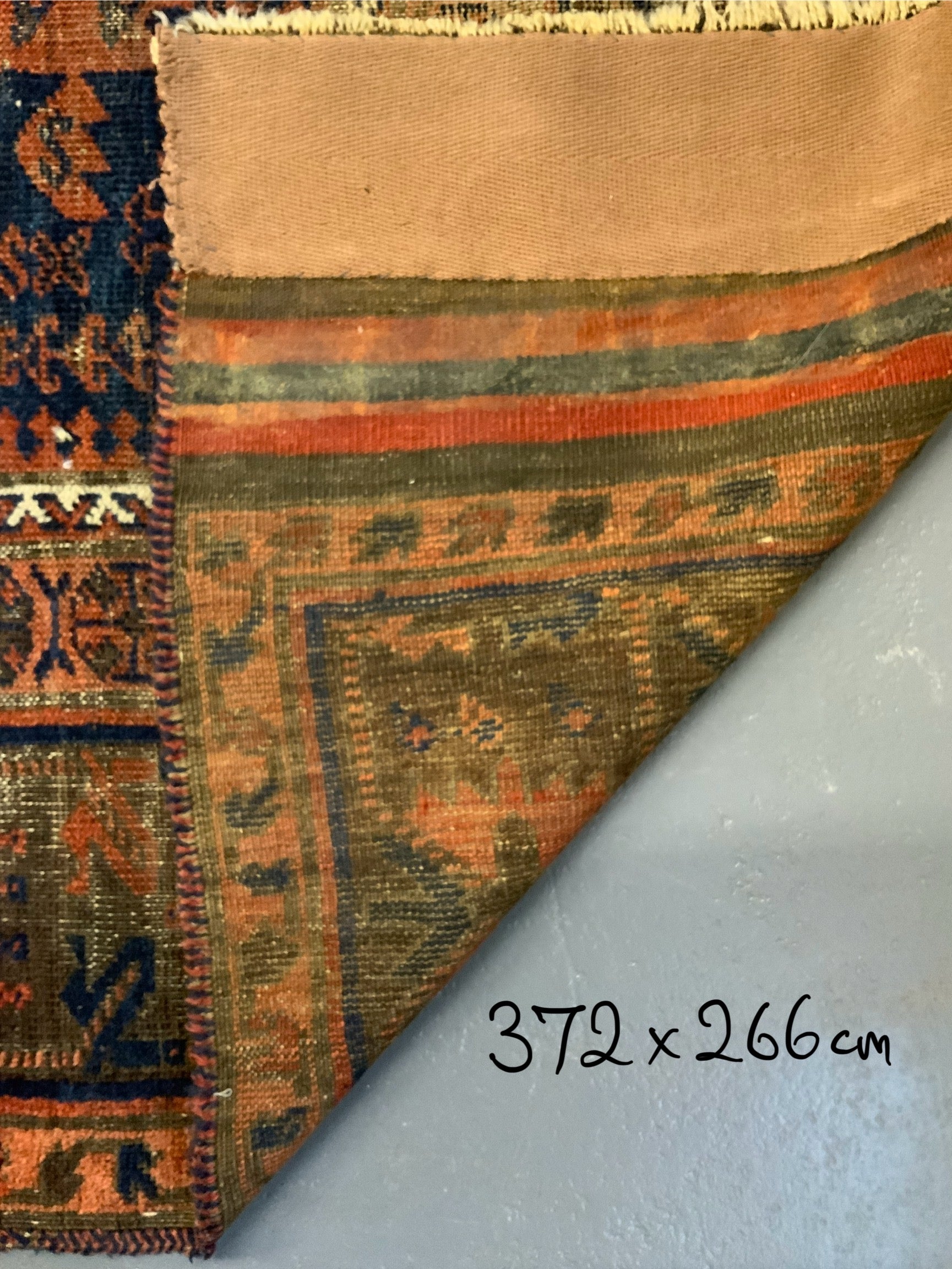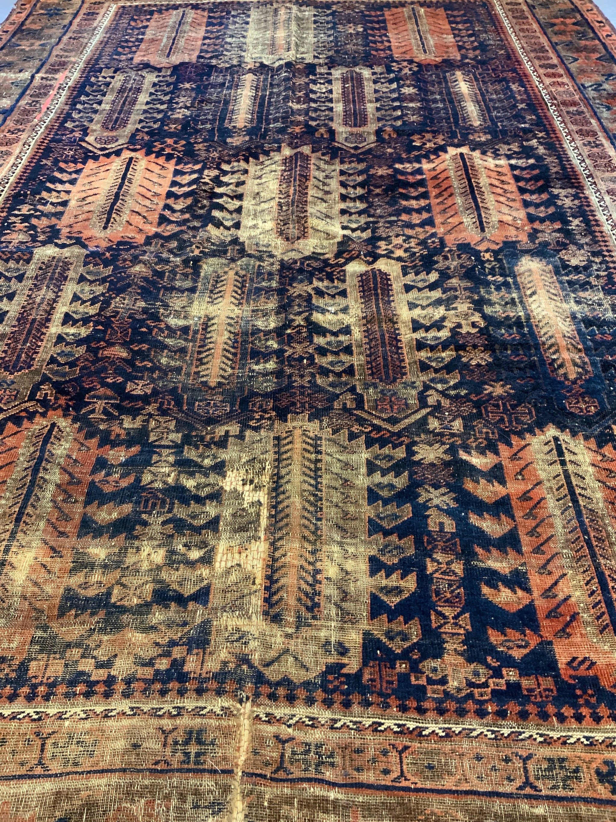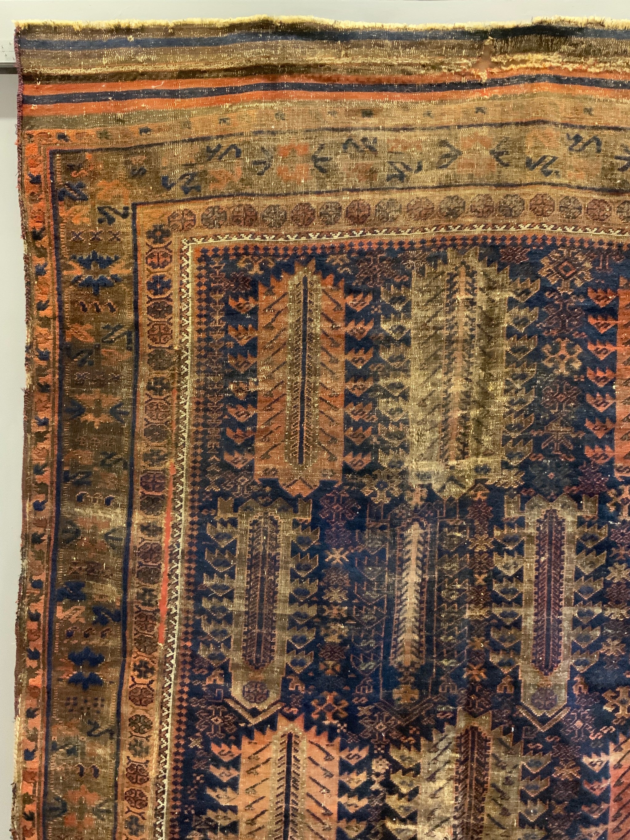 This ancient carpet was acquired in as found / very worn condition but has recently been conserved and stabilised to fulfil a functional purpose once again