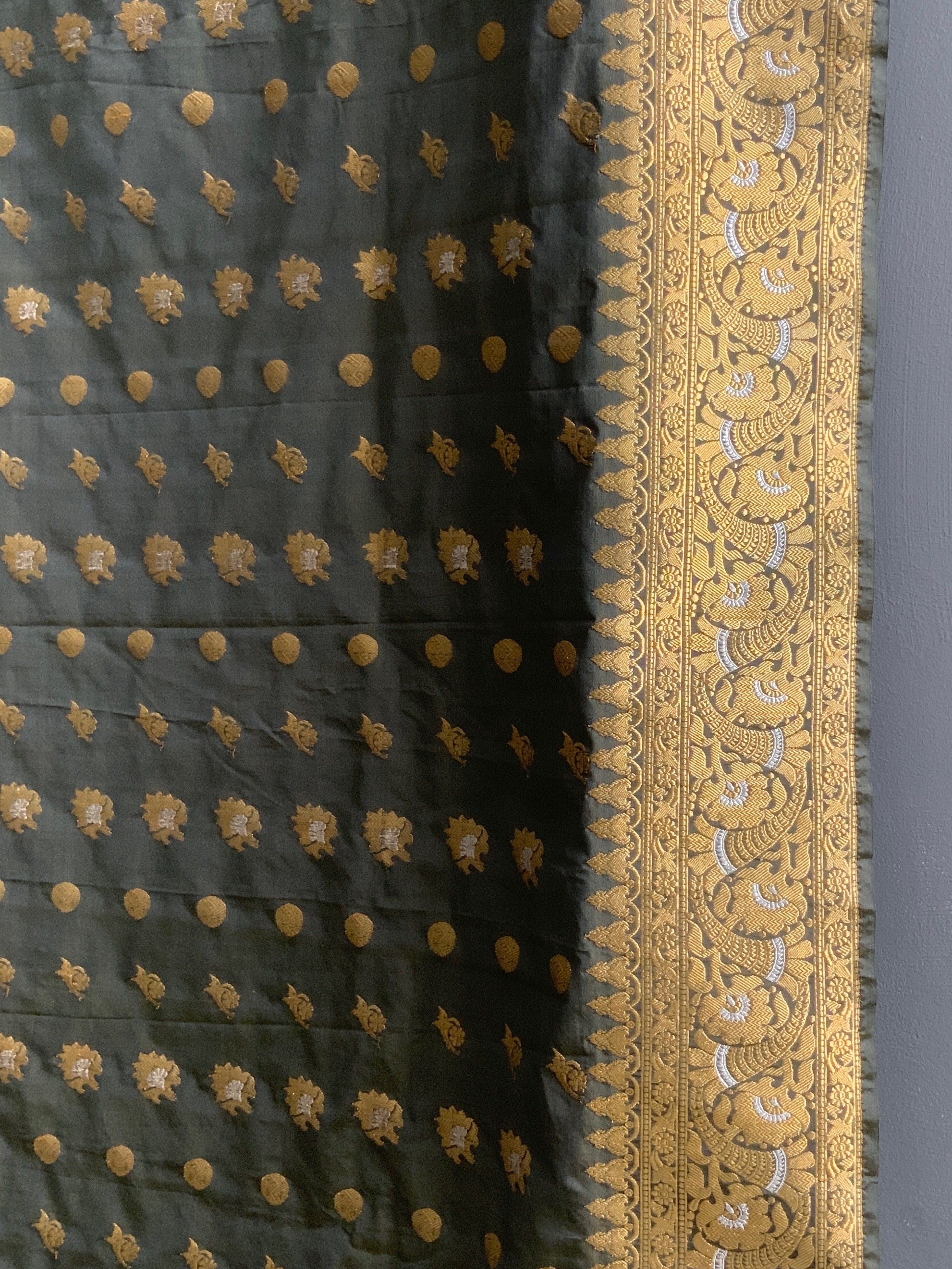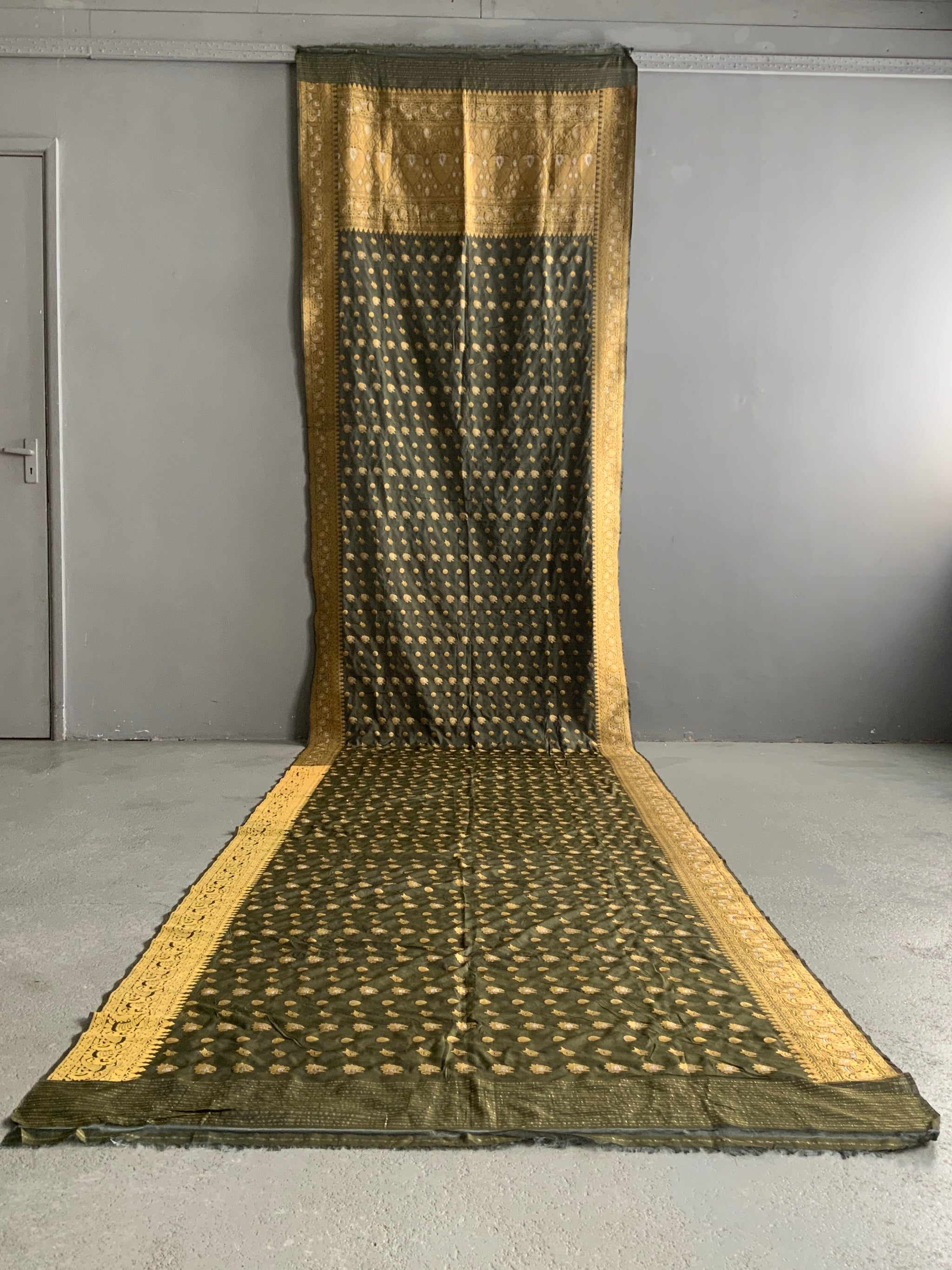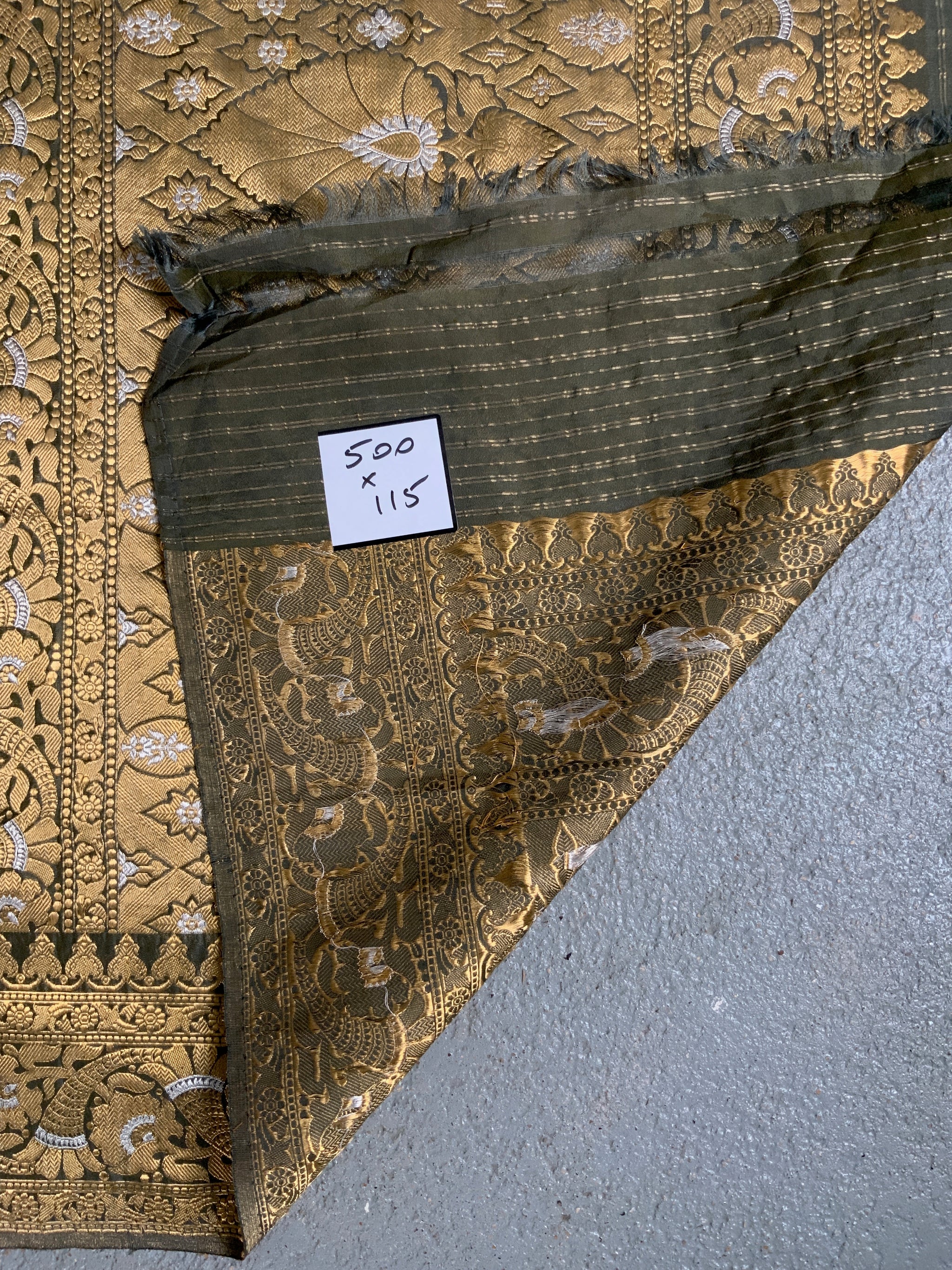 Indian green sari / saree with yellow gold brocade (500 x 115cm)