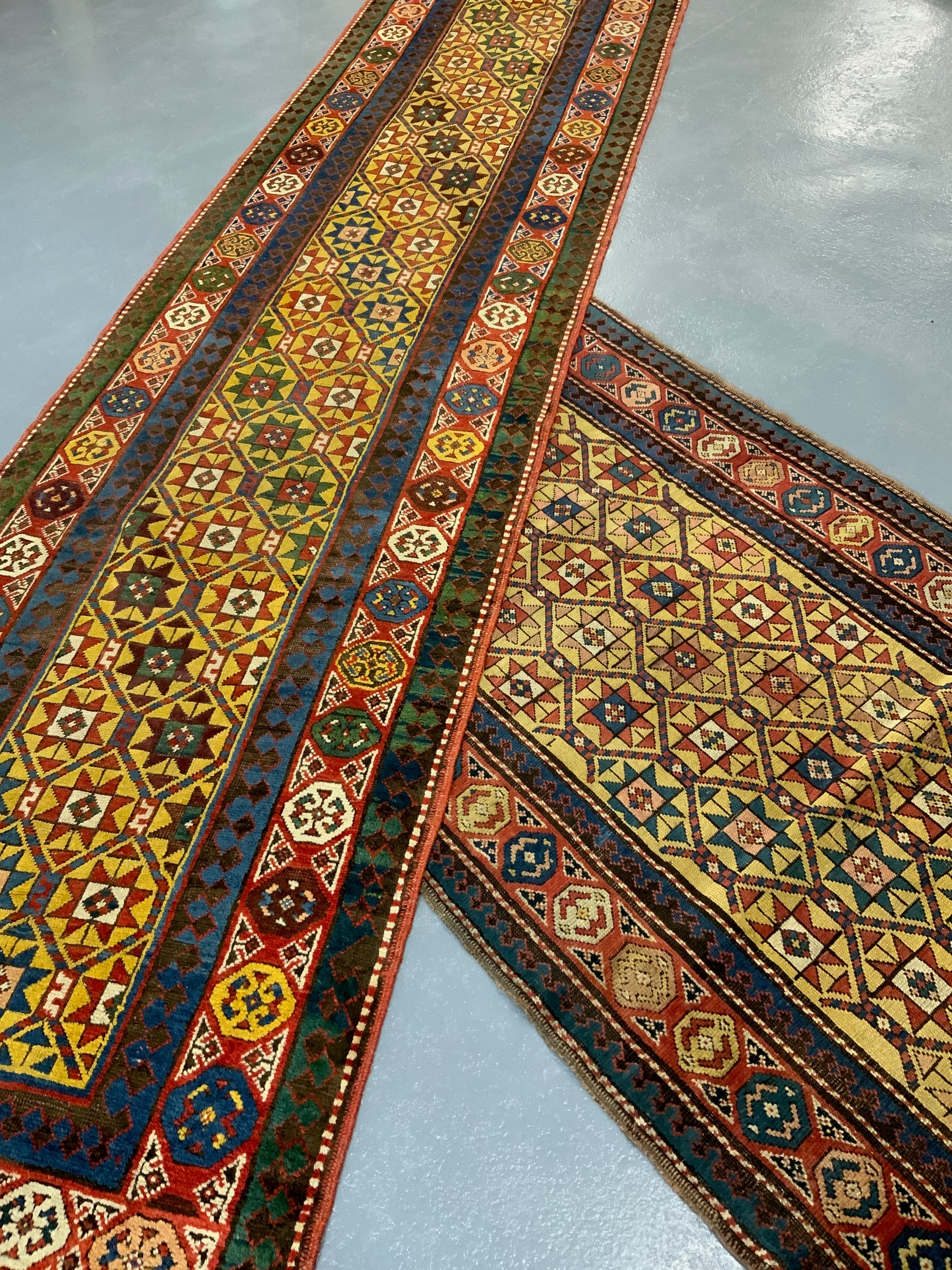 Companion pieces of yellow ground and complimentary designs - sold as a set of two [2] runners