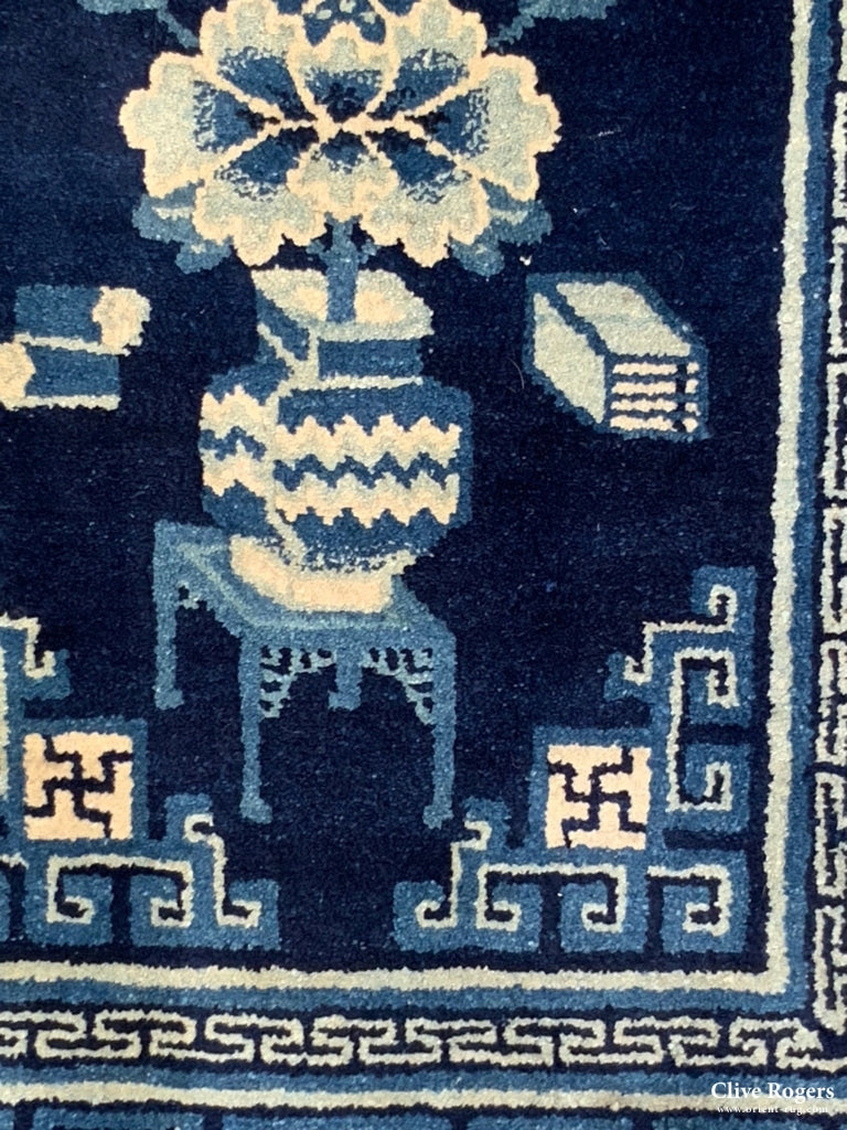 This indigo indigo saddle rug is from the region Baotou - Suiyan is east of Beijing and is responsive to the Inner Mongolian market from which the wool of this rug was probably made. The rug is in excellent condition.