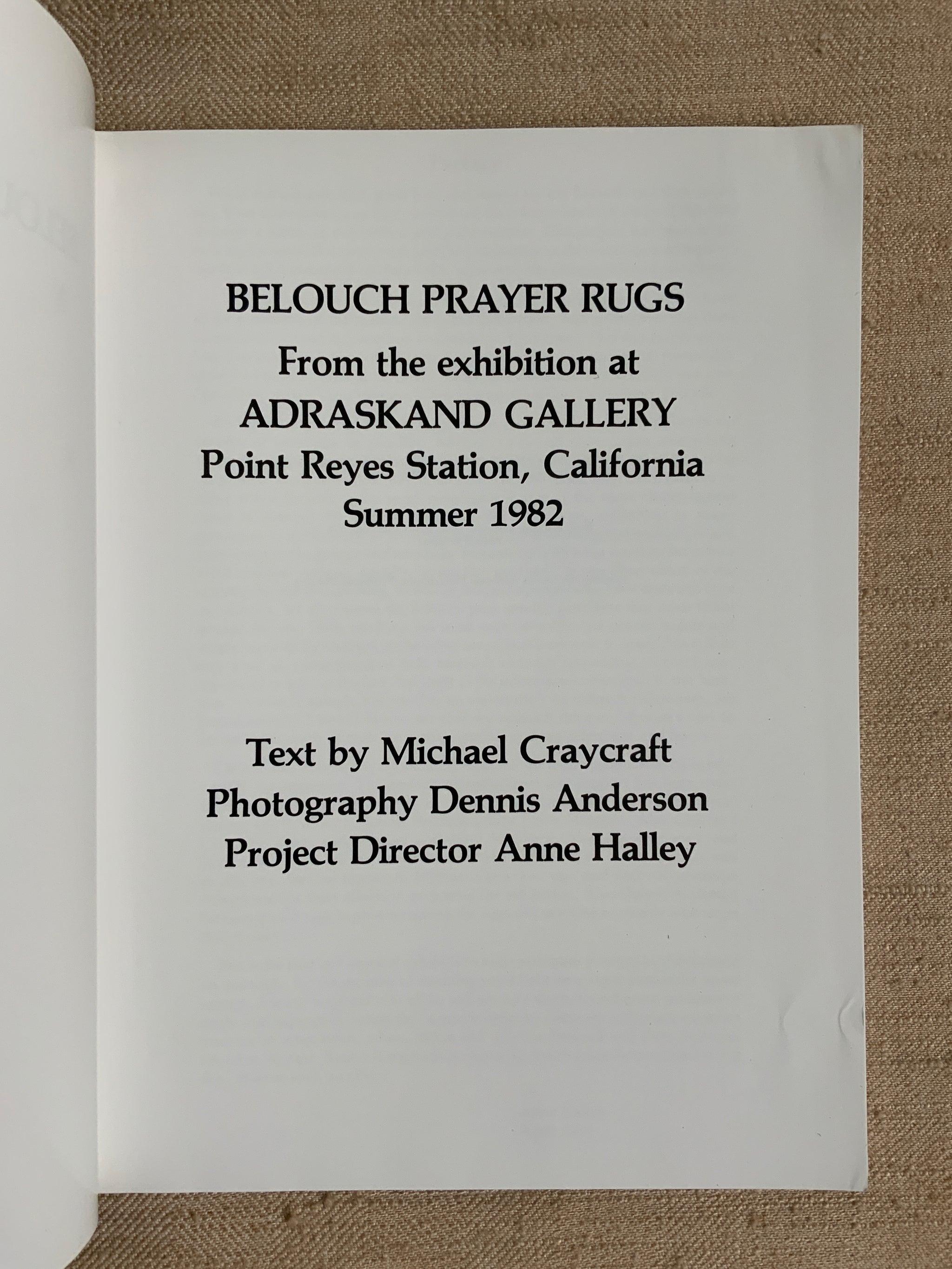 Belouch Prayer Rugs from the exhibition at Adraskand Gallery, Point Reyes Station, California, Summer 1982.