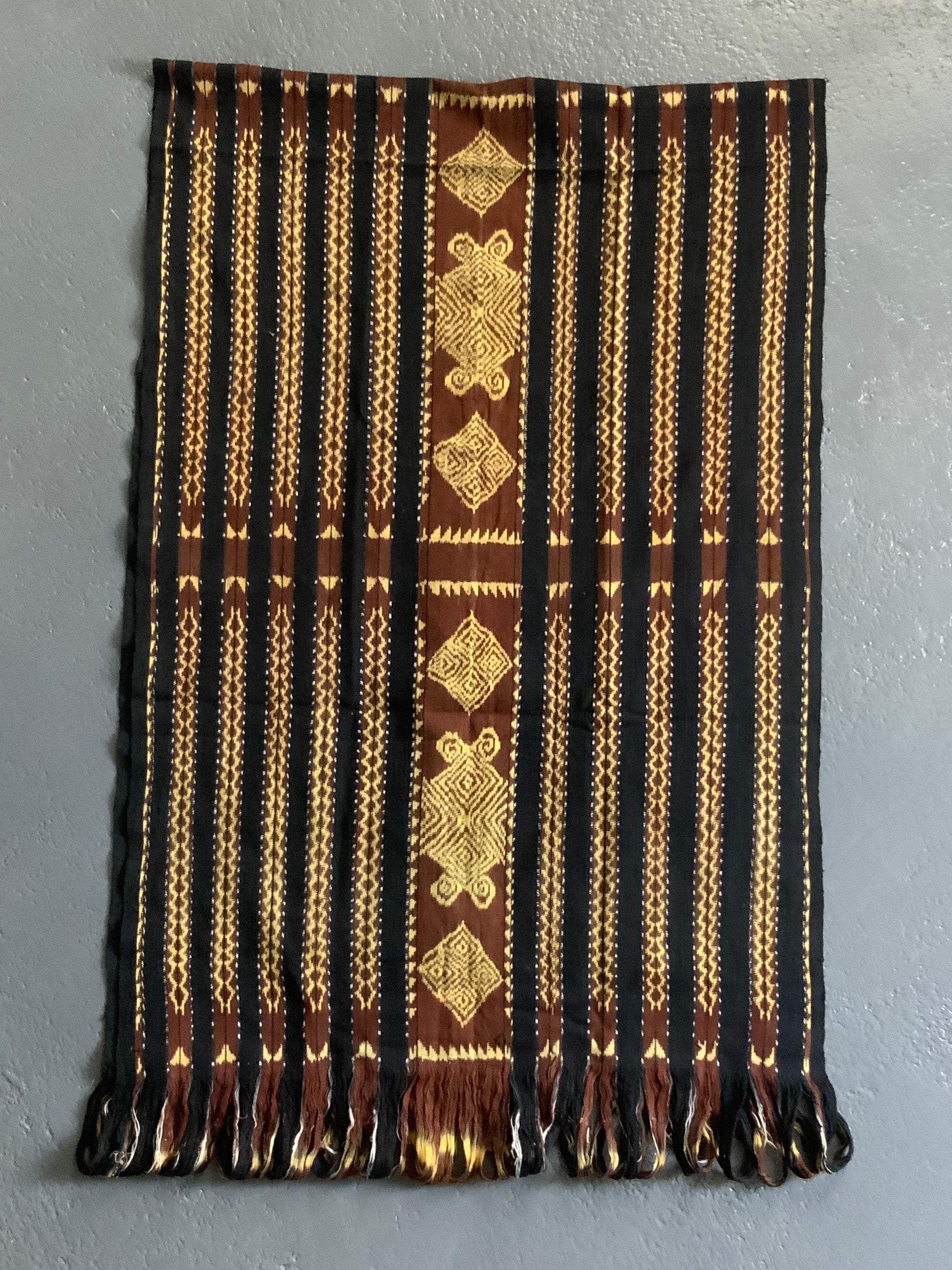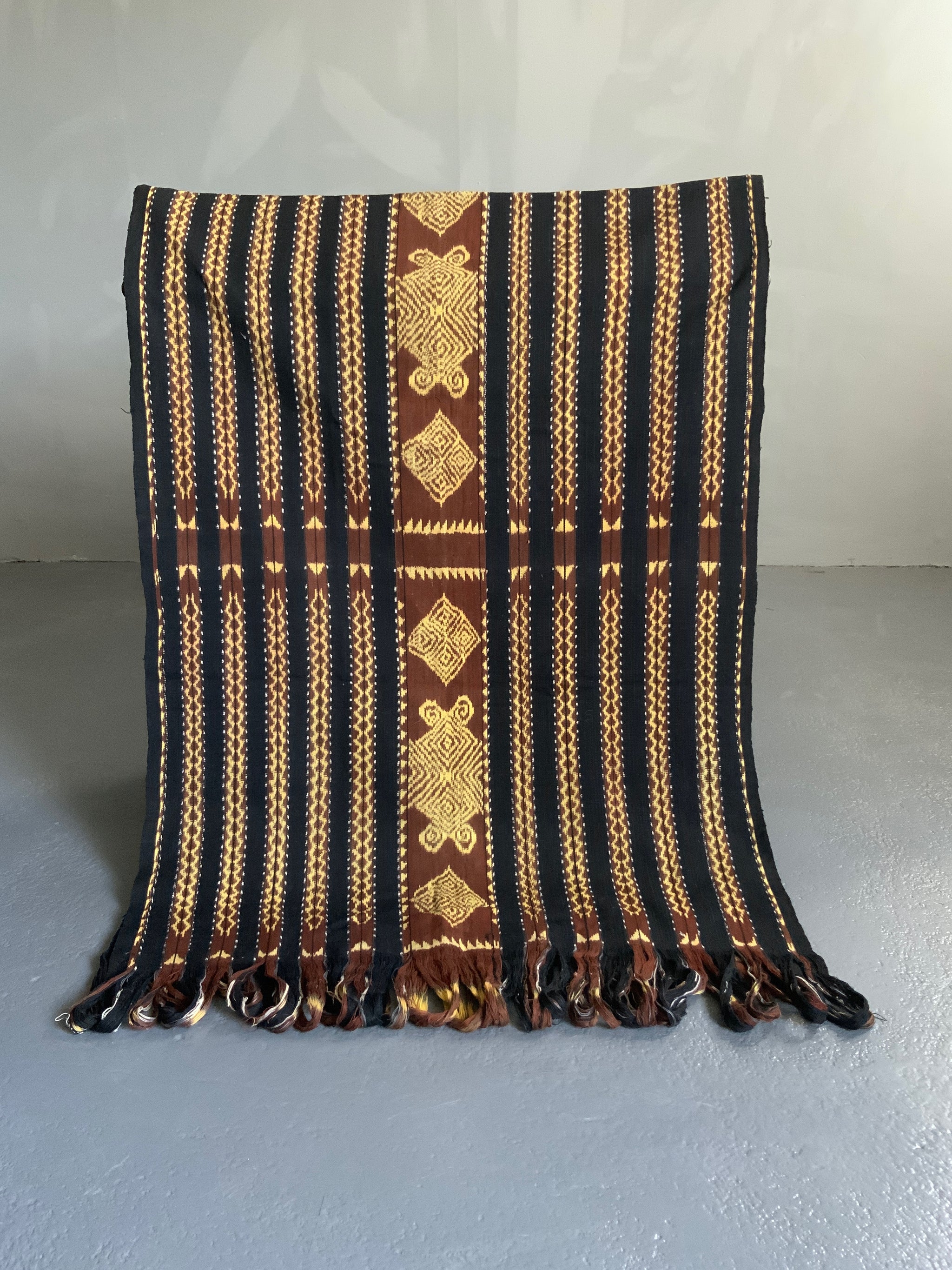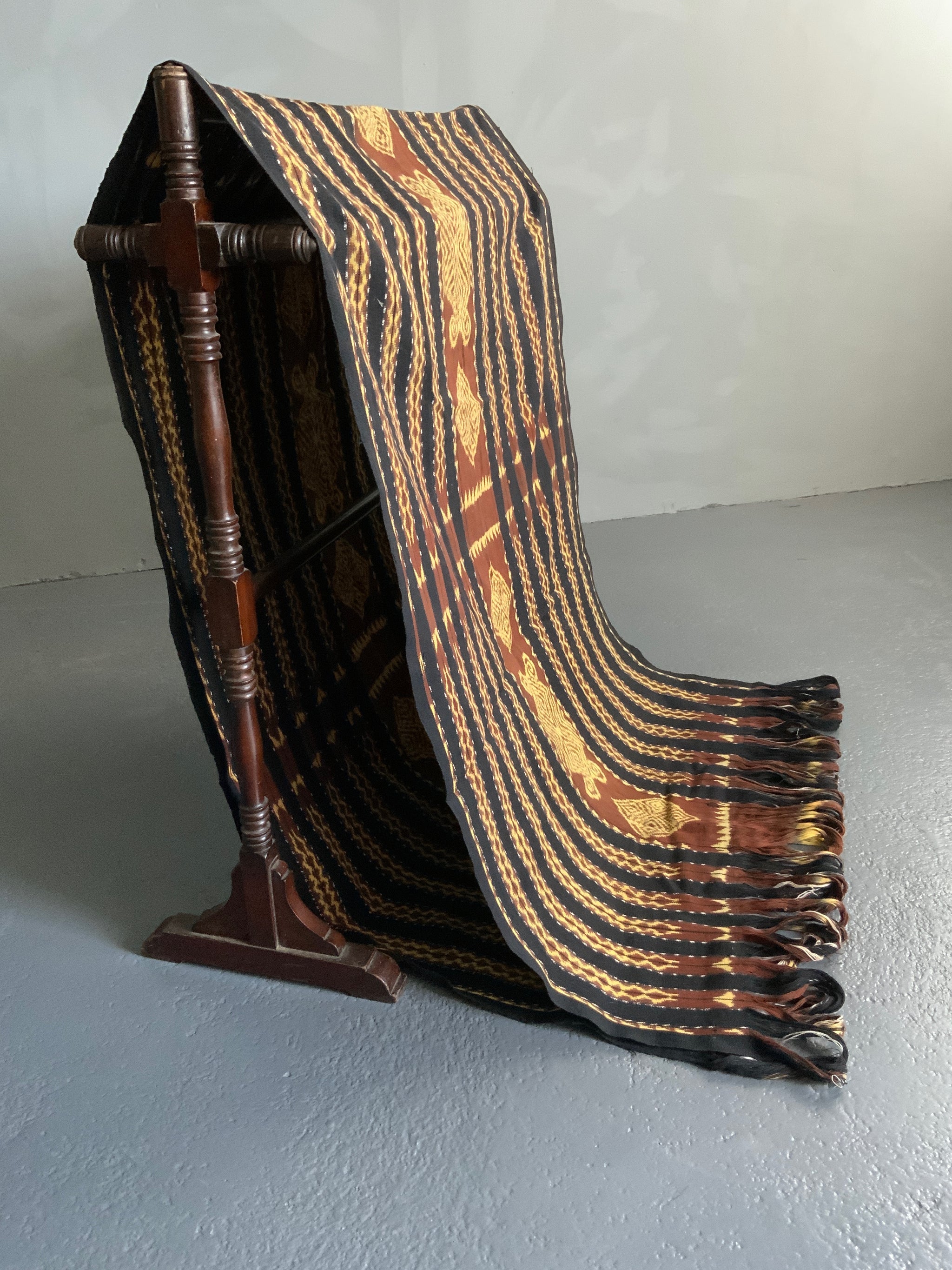 Woven to be cut into two parts and sewn together one above the other, then vertically into a tube skirt - decorated with warp ikat bands, probably Savu, Indonesia