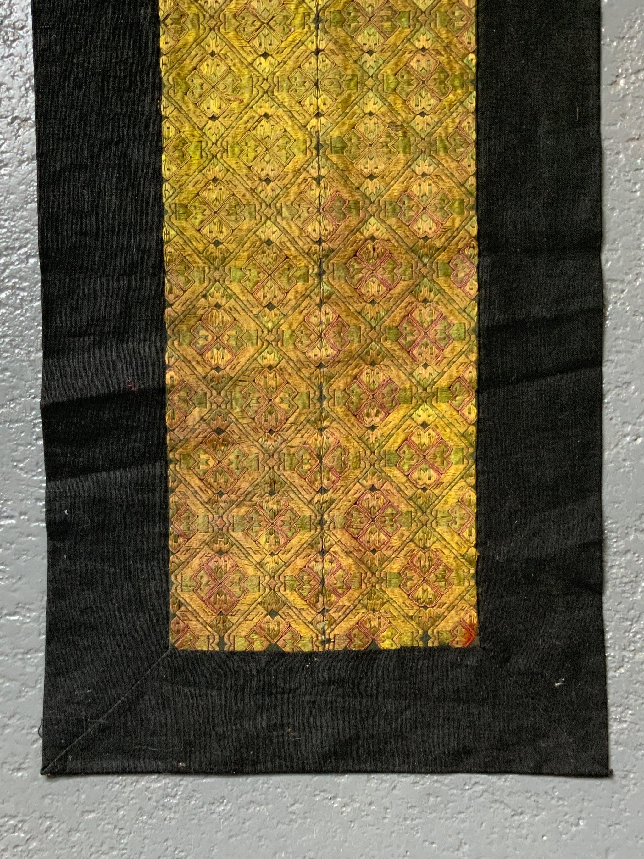 Made up from a pair of Hmong-Miao silk embroidered sleeves from Huangping, E. Guizhou. SW China