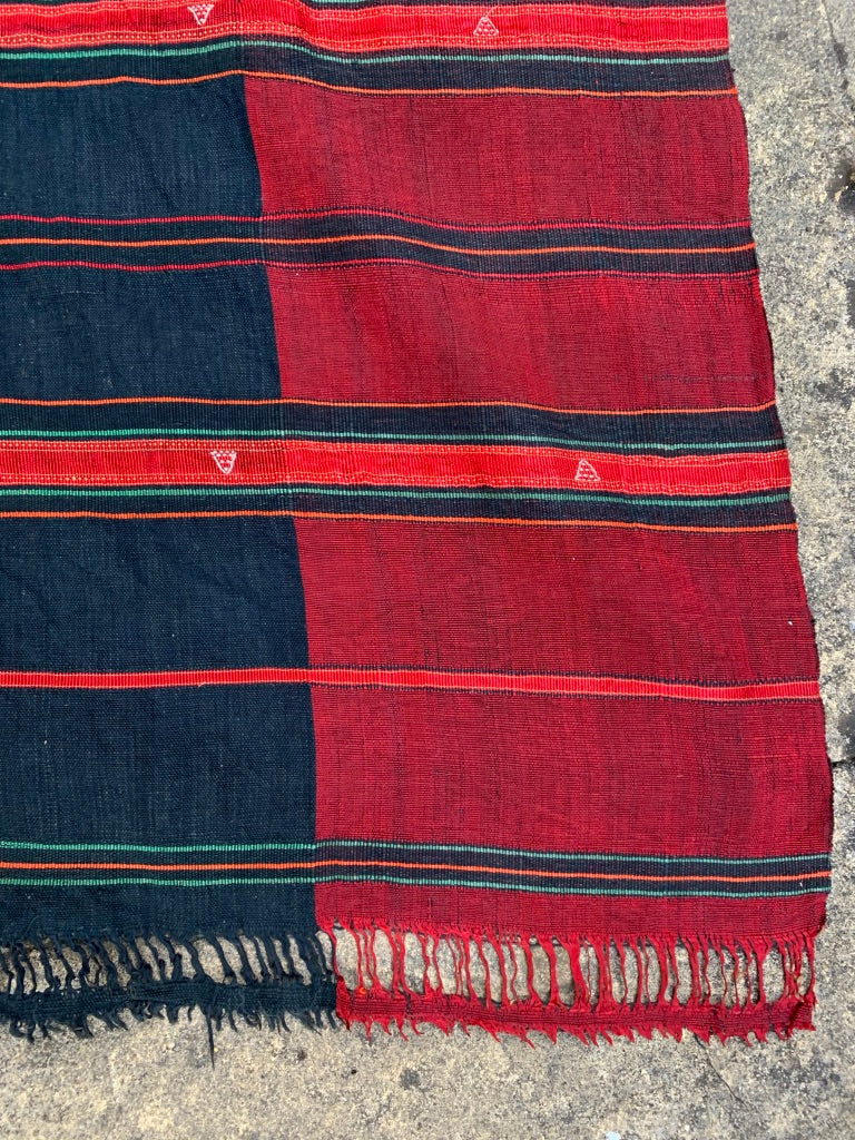 Waziristan vintage cotton indigo & silk shawl (242 x 153cm)